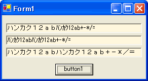 // textBox1 の文字列を、半角変換して textBox2 に表示する