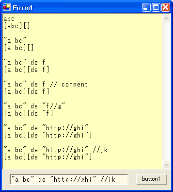 // textBox1 を「コマンドライン」とみなして、そこに入力された文字列を、