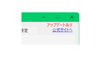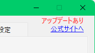 通知はダイアログのほか、操作画面右上に「アップデートあり」と表示されます。