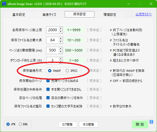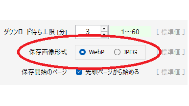 選択できるようになりました。標準選択は WebP です。