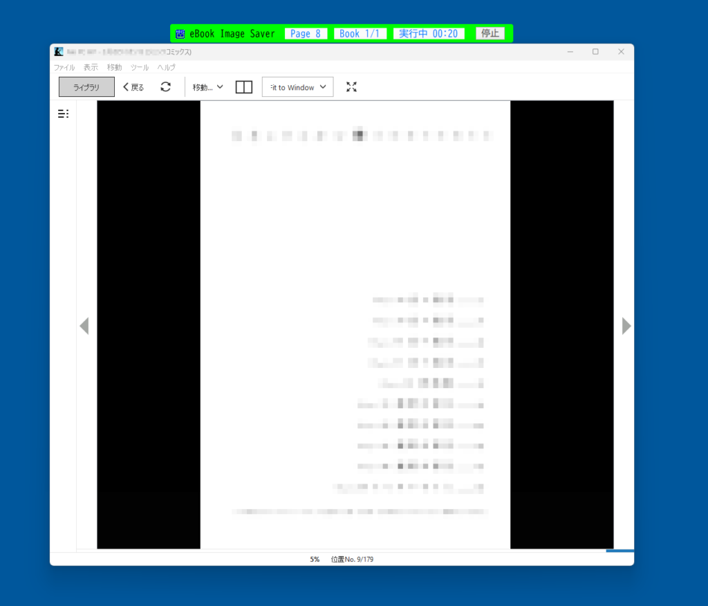 画像の保存速度は、PC の性能や指定した画像サイズに依存しますが、1 ページあたり1秒前後です。一般的なマンガ本なら、1 冊あたり約2~4分で保存できます。